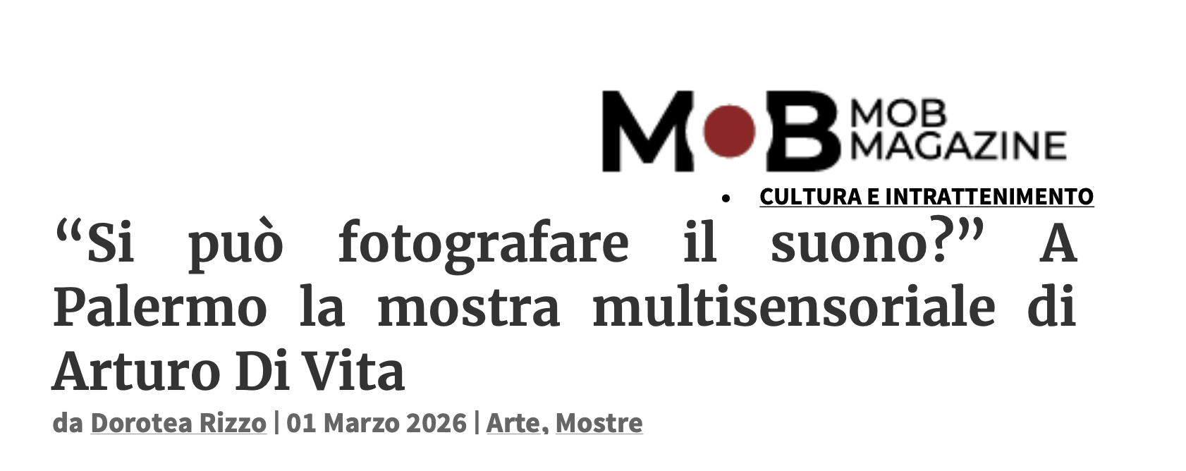 Ancora un fantastico articolo, fra i più completi ed esaustivi, della mostra Multisensoriale, scritto da Dorotea Rizzo |