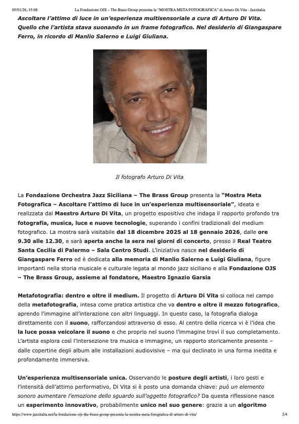 della musica jazz. Come fotografo jazz, Di Vita si è specializzato