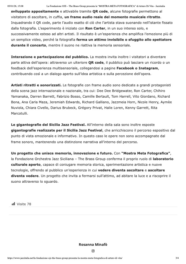 Splendido articolo di Luciana Amato dedicato alla Fotografia Musicale "Il corpo della musica in queste foto" Un vero trattato sull'essenza della fotografia nel jazz